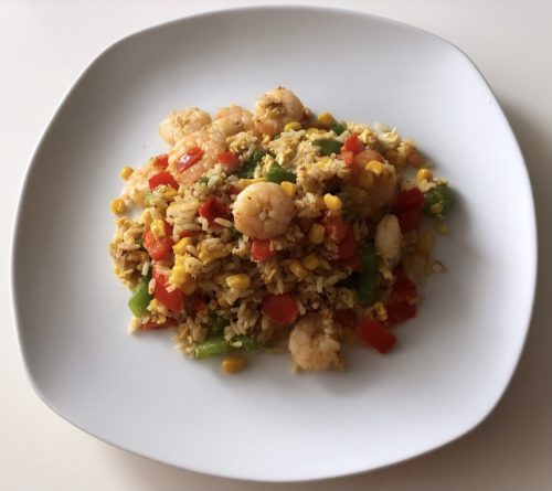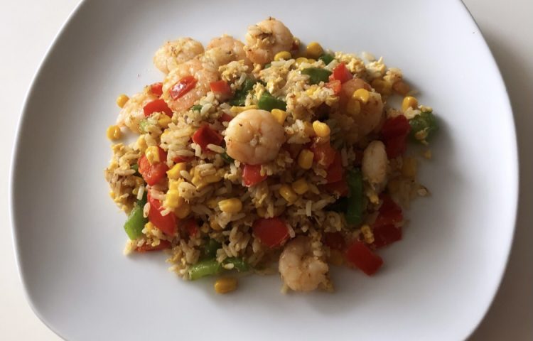 Na kokosovem maslu popečemo rakce in zelenjavo. Dodamo kuhan riž, vse skupaj začinimo in pražimo še minuto. Dodamo umešano jajce in pražimo še par minut.